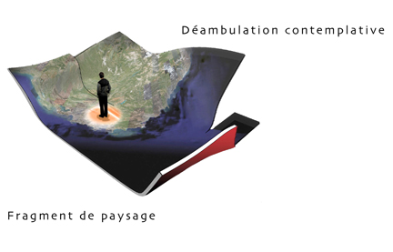 [...ce lieu doit contenir l’ensemble du territoire PACA, l’idée est de créer un territoire imaginaire, prenant la forme d’une "Nappe" géographique comme coeur de construction de l’espace scénographique. La "Nappe", pellicule territoriale, se déploie en une topographie métaphorique illustrant la Région....] |